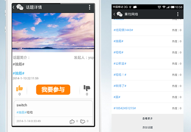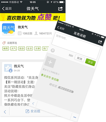 人人都是微話題制造者。近期熱門話題、個人興趣、網(wǎng)友討論多種渠道內容,經(jīng)過編輯發(fā)布,就可進入該頁面發(fā)布信息進行討論交流。增強用戶活躍度,吸引用戶。